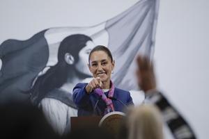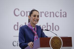(250602) -- CIUDAD DE MEXICO, 2 junio, 2025 (Xinhua) -- La presidenta de México, Claudia Sheinbaum, habla durante su conferencia...