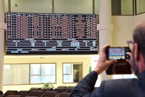 (250602) -- DAMASCO, 2 junio, 2025 (Xinhua) -- Un hombre toma una foto de la pantalla de negociación dentro de...
