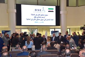(250602) -- DAMASCO, 2 junio, 2025 (Xinhua) -- Funcionarios e invitados asisten a la ceremonia de reapertura de la Bolsa...