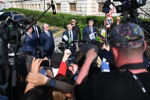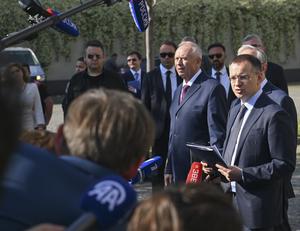 (250602) -- ESTAMBUL, 2 junio, 2025 (Xinhua) -- El asesor presidencial ruso, Vladimir Medinsky (c-atrás), habla ante la prensa, en...