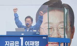 (250602) -- SEUL, 2 junio, 2025 (Xinhua) -- Lee Jae-myung, candidato presidencial por el Partido Democrático, asiste a una campaña...