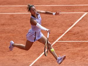 (250603) -- PARÍS, 3 junio, 2025 (Xinhua) -- Zheng Qinwen devuelve la pelota durante los cuartos de final de individuales...