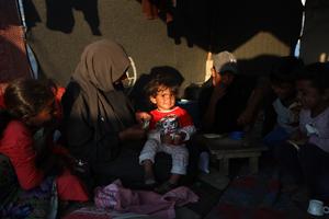(250603) -- GAZA, 3 junio, 2025 (Xinhua) -- Imagen del 2 de junio de 2025 de un niño desplazado visto...