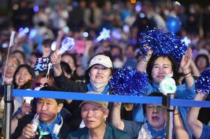(250603) -- SEÚL, 3 junio, 2025 (Xinhua) -- Simpatizantes de Lee Jae-myung, del liberal Partido Democrático, el mayoritario de la...