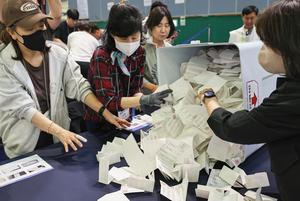 (250603) -- SEÚL, 3 junio, 2025 (Xinhua) -- Trabajadores cuentan las papeletas de las elecciones presidenciales de la República de...