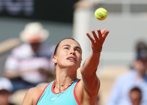 (250603) -- PARÍS, 3 junio, 2025 (Xinhua) -- Aryna Sabalenka sirve la pelota durante los cuartos de final de individuales...