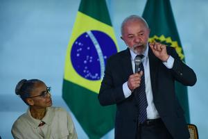 (250603) -- BRASILIA, 3 junio, 2025 (Xinhua) -- El presidente brasileño, Luiz Inácio Lula da Silva (d), habla junto la...