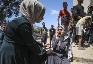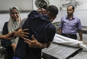 (250603) -- GAZA, 3 junio, 2025 (Xinhua) -- Palestinos se lamentan por una víctima asesinada en un ataque aéreo israelí,...