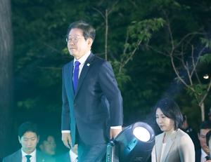 (250603) -- SEÚL, 4 junio, 2025 (Xinhua) -- Lee Jae-myung (i-frente) llega para una celebración en la Asamblea Nacional, en...