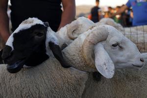 (250603) -- BOUSSAADA, 3 junio, 2025 (Xinhua) -- Imagen del 1 de junio de 2025 de ovejas a la venta...