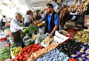 (250603) -- DAMASCO, 3 junio, 2025 (Xinhua) -- Imagen del 2 de junio de 2025 de un cliente seleccionando hierbas...