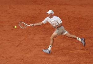 (250604) -- PARIS, 4 junio, 2025 (Xinhua) -- Imagen del 3 de junio de 2025 de Tommy Paul devolviendo la...