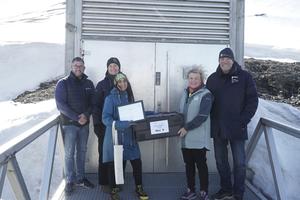 (250604) -- SVALBARD, 4 junio, 2025 (Xinhua) -- Imagen del 3 de junio de 2025 de trabajadores transportando muestras de...
