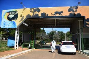 (250604) -- BRASILIA, 4 junio, 2025 (Xinhua) -- Un trabajador de la salud desinfecta un vehículo dentro de una barrera...