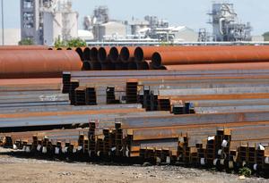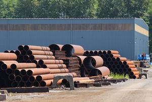 (250604) -- DELTA, 4 junio, 2025 (Xinhua) -- Imagen del 3 de junio de 2025 de tubos de acero vistos...