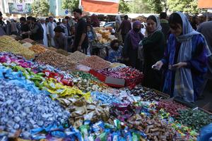 (250604) -- KABUL, 4 junio, 2025 (Xinhua) -- Imagen del 3 de junio de 2025 de personas comprando dulces en...