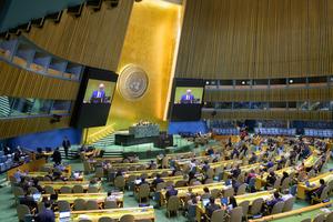 (250604) -- NACIONES UNIDAS, 4 junio, 2025 (Xinhua) -- La Asamblea General de la ONU sostiene una reunión para elegir...