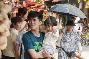 (250604) -- HANOI, 4 junio, 2025 (Xinhua) -- Un hombre lleva a una niña en sus brazos, en Hanoi, capital...