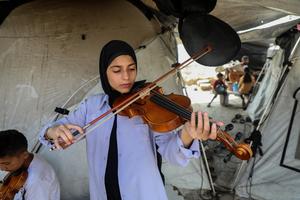 (250604) -- GAZA, 4 junio, 2025 (Xinhua) -- Imagen del 3 de junio de 2025 de una niña palestina desplazada...