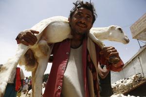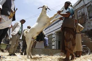 (250604) -- SANA, 4 junio, 2025 (Xinhua) -- Imagen del 2 de junio de 2025 de personas comprando ovejas en...
