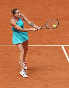 (250608) -- PARIS, 8 junio, 2025 (Xinhua) -- Imagen del 7 de junio de 2025 de Aryna Sabalenka devolviendo la...
