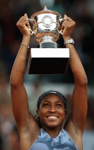 (250608) -- PARIS, 8 junio, 2025 (Xinhua) -- Imagen del 7 de junio de 2025 de la ganadora Coco Gauff...