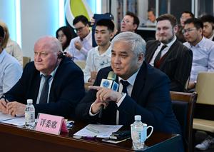 (250608) -- QINGDAO, 8 junio, 2025 (Xinhua) -- Un juez realiza preguntas a los concursantes durante la final del IV...