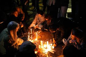 (250608) -- BOGOTA, 8 junio, 2025 (Xinhua) -- Imagen del 7 de junio de 2025 de personas encendiendo velas mientras...