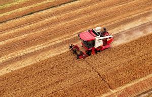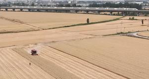 (250606) -- BEIJING, 6 junio, 2025 (Xinhua) -- Imagen del 4 de junio de 2025 de una cosechadora segando trigo...
