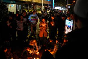 (250608) -- BOGOTA, 8 junio, 2025 (Xinhua) -- Imagen del 7 de junio de 2025 de personas encendiendo velas mientras...
