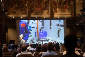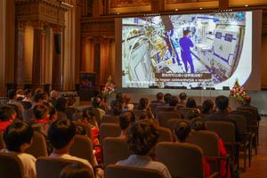 (250606) -- BUDAPEST, 6 junio, 2025 (Xinhua) -- Personas asisten a una sesión especial de preguntas y respuestas sobre ciencia...