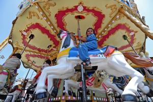 (250606) -- BEIRUT, 6 junio, 2025 (Xinhua) -- Niños juegan durante el primer día del Eid al-Adha, en Beirut, Líbano,...