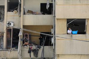 (250606) -- BEIRUT, 6 junio, 2025 (Xinhua) -- Un edificio dañado por ataques aéreos israelíes es visto en el suburbio...
