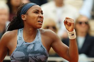 (250608) -- PARIS, 8 junio, 2025 (Xinhua) -- Imagen del 7 de junio de 2025 de Coco Gauff festejando un...