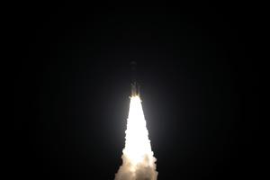 (250606) -- TAIYUAN, 6 junio, 2025 (Xinhua) -- Un cohete portador modificado Gran Marcha-6 que transporta un grupo de satélites...