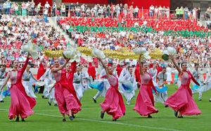(250608) -- MINSK, 8 junio, 2025 (Xinhua) -- Imagen del 7 de junio de 2025 de personas realizando una presentación...