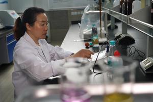 (250609) -- YANCHENG, 9 junio, 2025 (Xinhua) -- Imagen del 7 de junio de 2025 de una empleada probando agua...