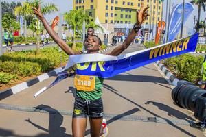 (250609) -- KIGALI, 9 junio, 2025 (Xinhua) -- Imagen del 8 de junio de 2025 de Florence Niyonkuru, de Ruanda,...