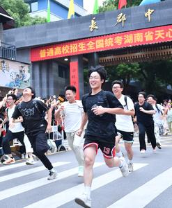 (250609) -- BEIJING, 9 junio, 2025 (Xinhua) -- Estudiantes salen corriendo de un sitio del examen nacional de ingreso a la universidad, en la ciudad de Changsha, en la provincia de Hunan, en el centro de China, el 9 de junio de 2025. El examen nacional de ingreso a la universidad de este año, también conocido como gaokao, comenzó el 7 de junio de este año. En algunas regiones, el examen finalizó el lunes. (Xinhua/Chen Zhenhai) (oa) (rtg) (vf)