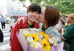 (250609) -- BEIJING, 9 junio, 2025 (Xinhua) -- Una familiar besa a una estudiante después del examen en un sitio del examen nacional de ingreso a la universidad, en la ciudad de Yangzhou, en la provincia de Jiangsu, en el este de China, el 9 de junio de 2025. El examen nacional de ingreso a la universidad de este año, también conocido como gaokao, comenzó el 7 de junio de este año. En algunas regiones, el examen finalizó el lunes. (Xinhua/Meng Delong) (oa) (rtg) (vf)