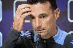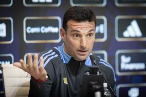 (250609) -- EZEIZA, 9 junio, 2025 (Xinhua) -- El entrenador de la selección Argentina de fútbol, Lionel Scaloni, reacciona durante...