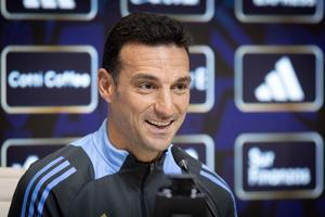 (250609) -- EZEIZA, 9 junio, 2025 (Xinhua) -- El entrenador de la selección Argentina de fútbol, Lionel Scaloni, sonríe durante...