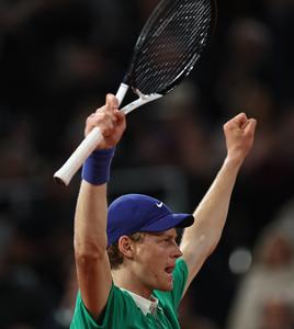 (250607) -- PARÍS, 7 junio, 2025 (Xinhua) -- Imagen del 6 de junio de 2025 de Jannik Sinner festejando después...