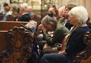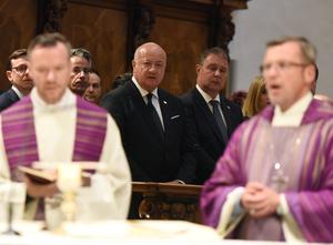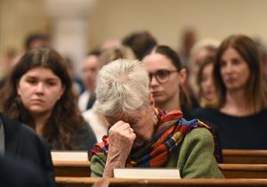 (250610) -- GRAZ, 10 junio, 2025 (Xinhua) -- Personas asisten a una ceremonia conmemorativa en una iglesia, en Graz, Austria,...