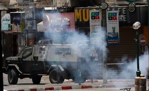 (250610) -- NAPLUSA, 10 junio, 2025 (Xinhua) Un vehículo de las fuerzas israelíes es visto durante una operación, en la...