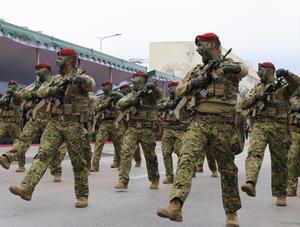 (250610) -- LAGOS, 10 junio, 2025 (Xinhua) -- Soldados participan en un desfile militar para celebrar el Día de Portugal,...