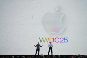 (250610) -- CUPERTINO, 10 junio, 2025 (Xinhua) -- Imagen del 9 de junio de 2025 de personas observando la Conferencia...