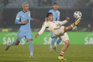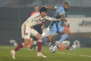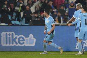 (250611) -- MONTEVIDEO, 11 junio, 2025 (Xinhua) -- Imagen del 10 de junio de 2025 del jugador Rodrigo Aguirre (d),...