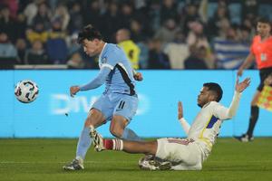 (250611) -- MONTEVIDEO, 11 junio, 2025 (Xinhua) -- Imagen del 10 de junio de 2025 del jugador Facundo Pellistri (d),...