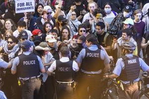 (250611) -- CHICAGO, 11 junio, 2025 (Xinhua) -- Imagen del 10 de junio de 2025 de manifestantes contra el Servicio...
